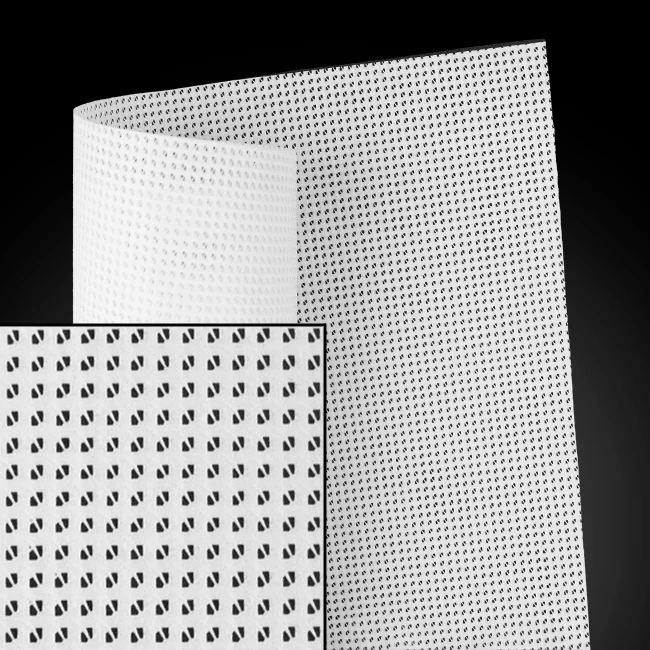 PVC-Mesh wird für Banner, Messen, Präsentationen, Fassadenwerbung und Gebäudeverkleidung eingesetzt. Es ist ein PVC-beschichtetes Polyester-Gitternetzgewebe mit einer ca. 20% offenen Struktur, welche die Windlast verringert. Auch der doppelseitige Druck ist möglich. Dabei ist aber zu beachten, dass die Randverstärkung auf der Rückseite technisch bedingt IMMER WEISS ist. Außerdem kann es motivabhängig zum leichten Durchscheinen der jeweiligen Rückseite kommen.